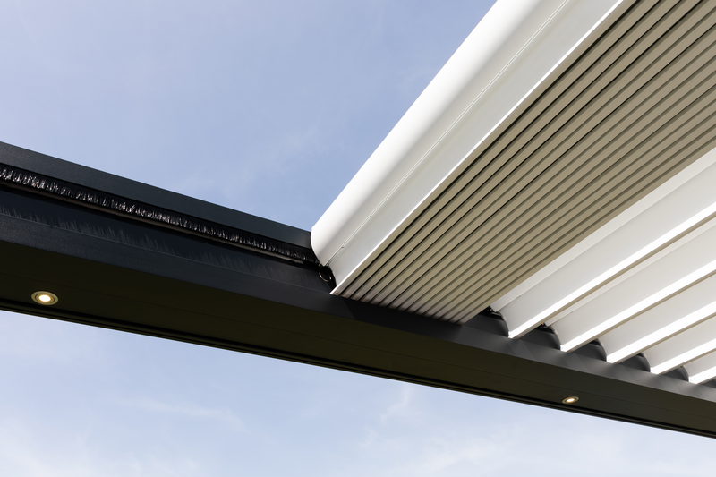 Tra le tante Pergole Bioclimatiche retrattili, noi abbiamo scelto la migliore: si tratta della Pergola B600S di Brustor, azienda belga leader nel settore delle coperture. La caratteristica che la differenzia dalle altre, è che in posizione retratta le lamelle occupano appena il 13% della superficie totale.