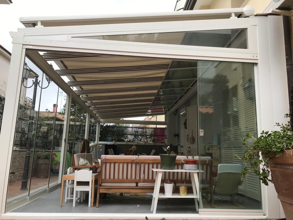 Tipologia: Copertura con tetto vetrato completa di vetrate scorrevoli